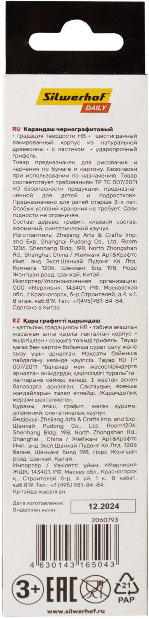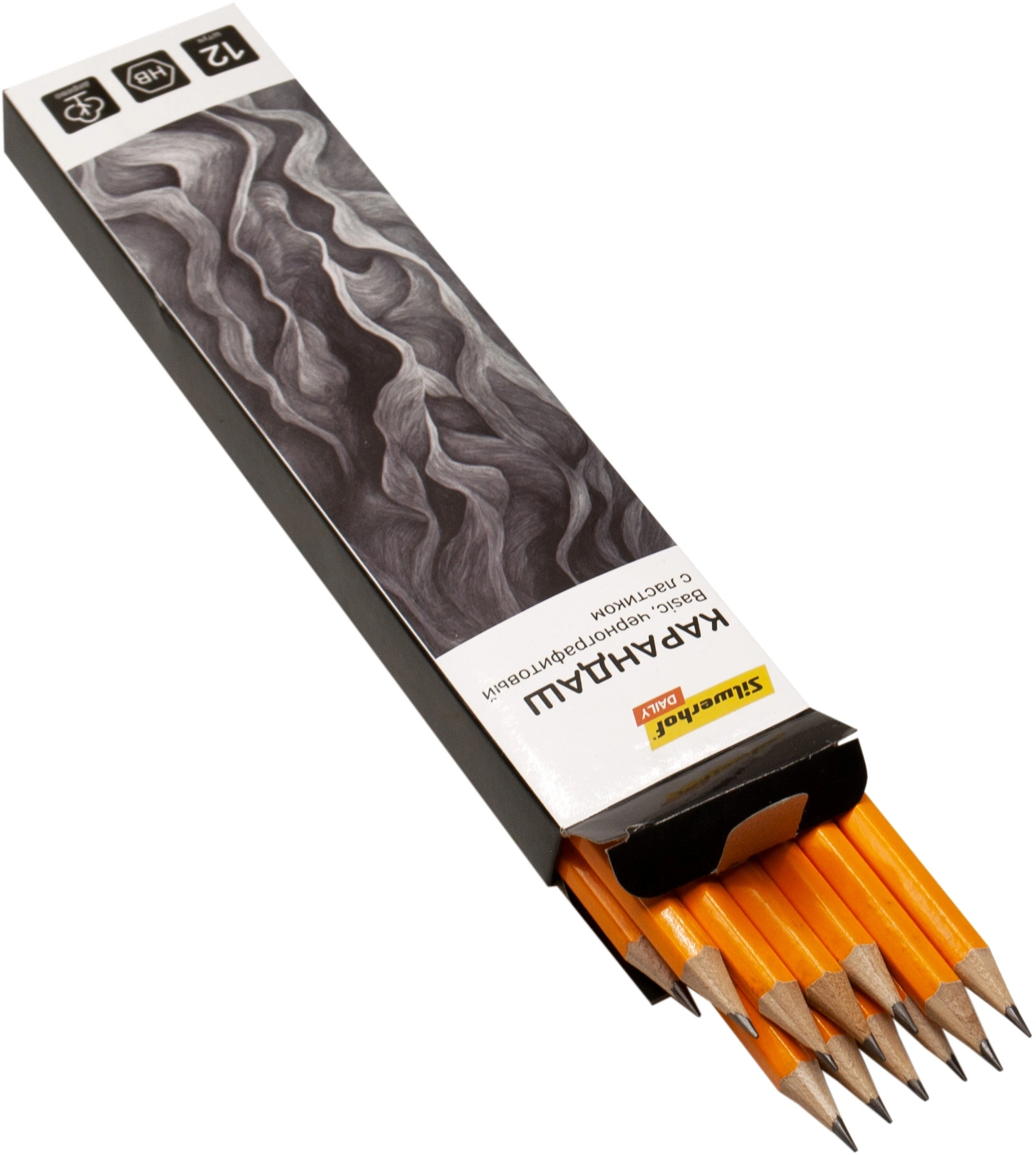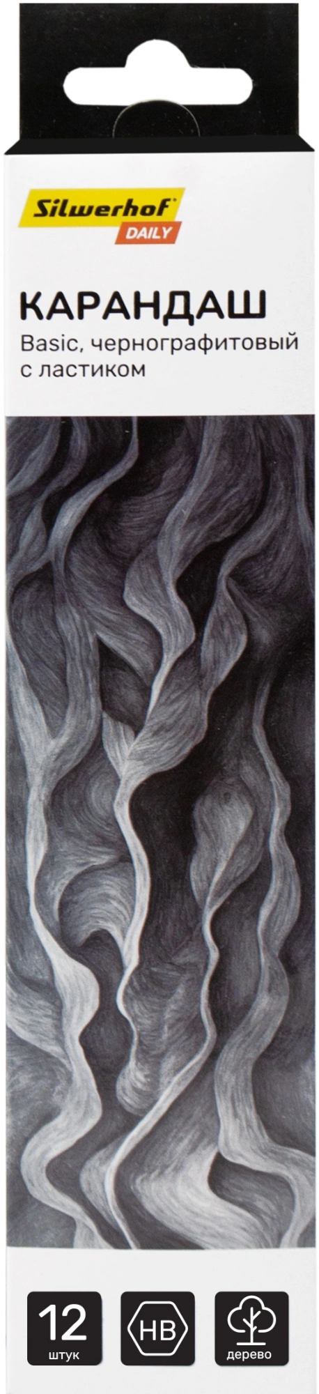 Карандаш ч/г Silwerhof Daily Basic 2мм HB шестигран. дерево коробка/европод. (12шт) ластик